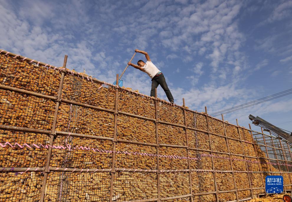10月5日,河北省邢臺市廣宗縣劉南蘇村村民在整理收獲的玉米。