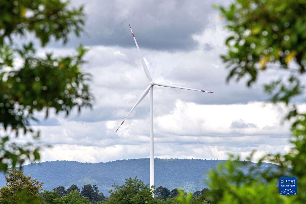 這是10月5日在泰國猜也蓬府拍攝的由中國金風(fēng)科技提供的風(fēng)力發(fā)電機。