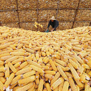 10月6日,山東省棗莊市山亭區城頭鎮荒溝村農民在整理收獲的玉米。