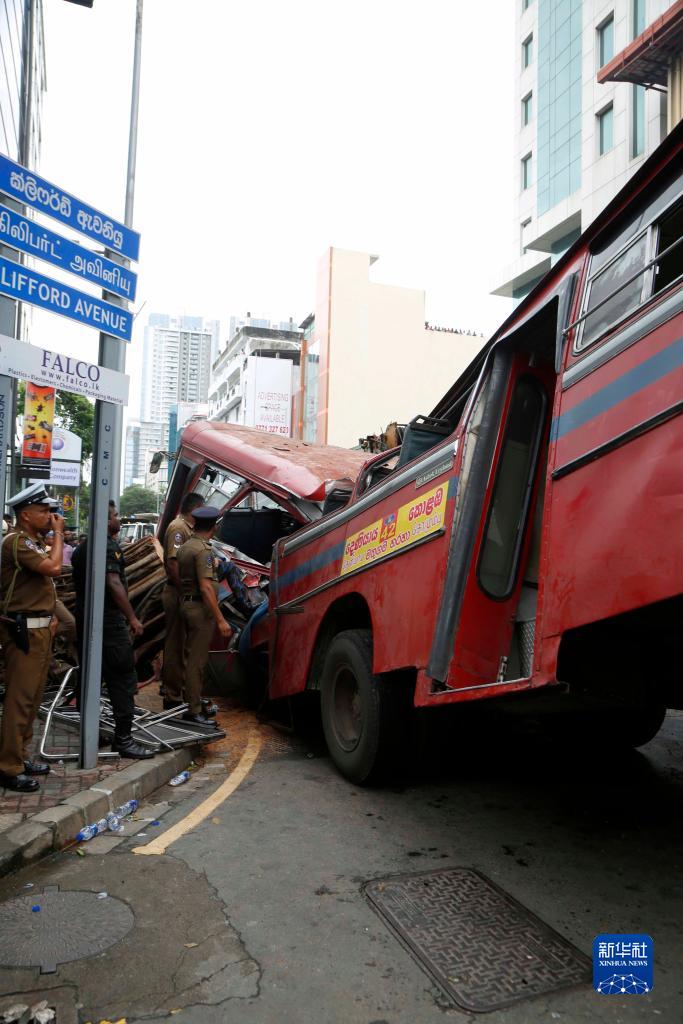 這是10月6日在斯里蘭卡科倫坡拍攝的公交車(chē)被砸事故現場(chǎng)。