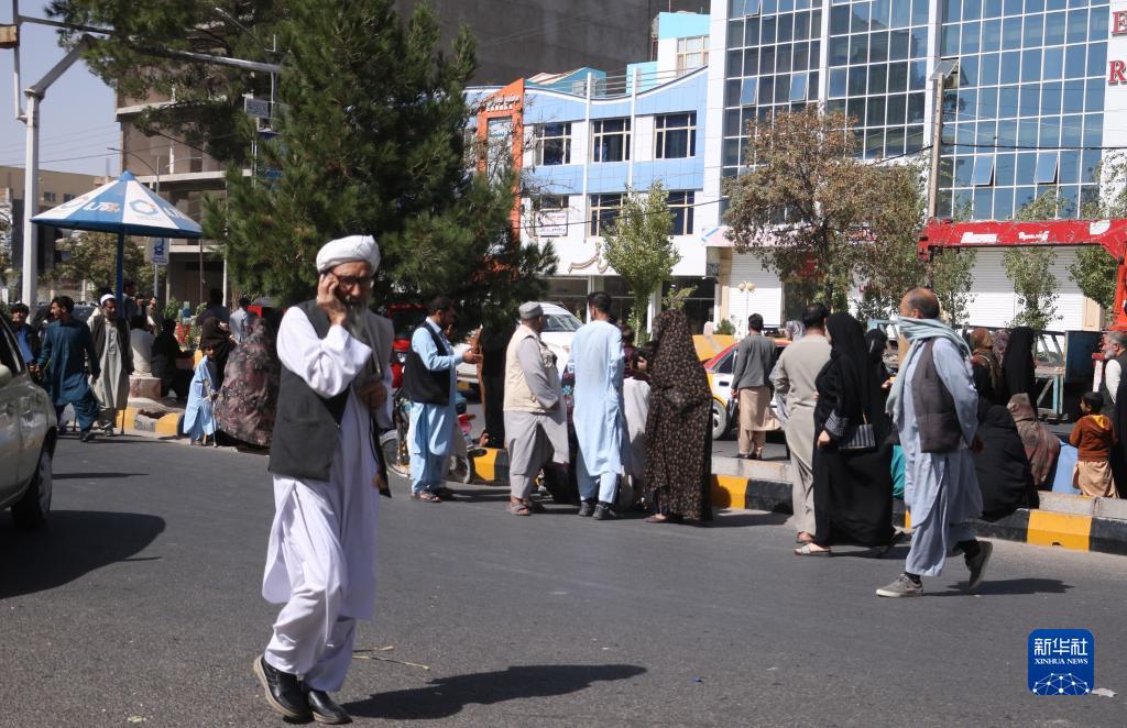 10月7日,阿富汗西部赫拉特省赫拉特市居民在街道上躲避地震。