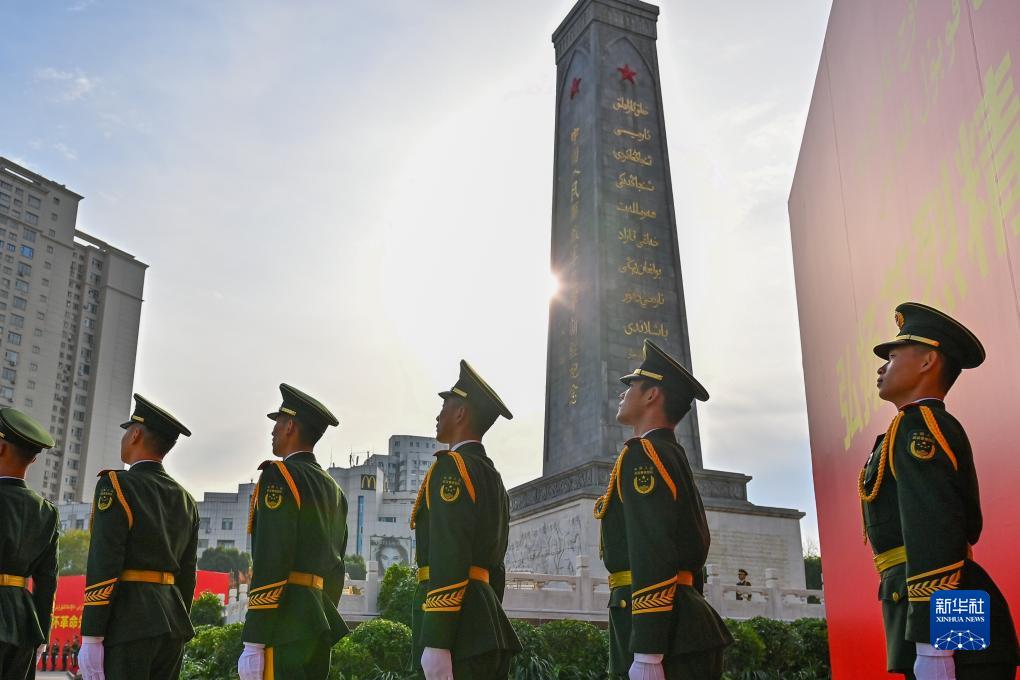 9月30日,新疆維吾爾自治區烈士紀念日向人民英雄敬獻花籃儀式在烏魯木齊市人民廣場(chǎng)舉行。