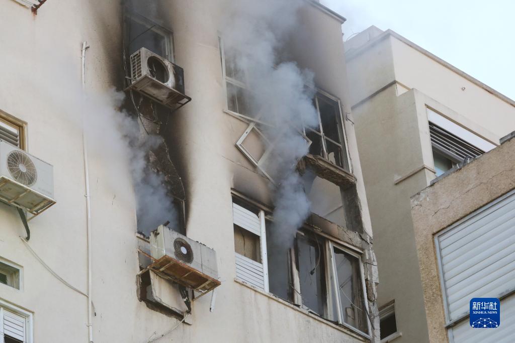 這是10月7日在以色列特拉維夫拍攝的一棟遭火箭彈襲擊的建筑。