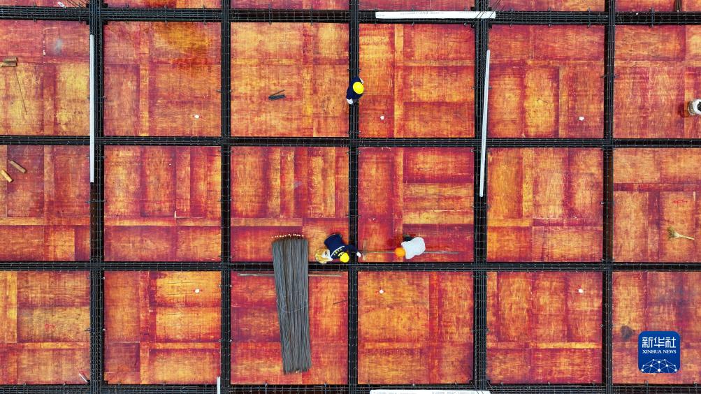 10月7日,工人在江蘇洪澤經(jīng)濟開(kāi)發(fā)區一項目工地忙碌。