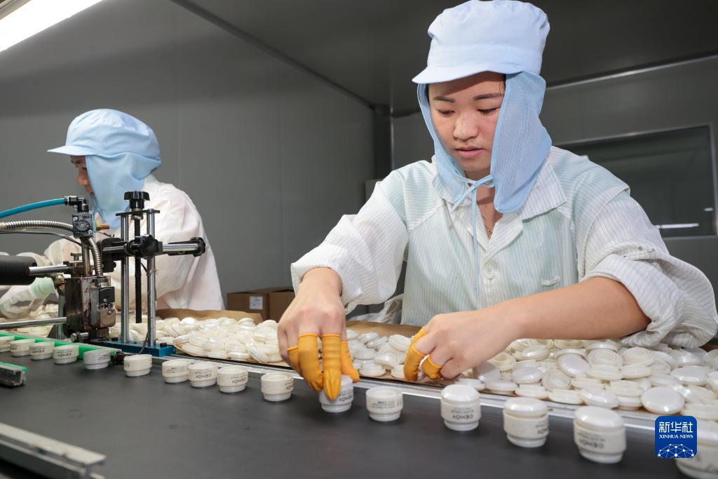10月7日,工人在浙江省湖州市吳興區埭溪鎮一家化妝品企業(yè)工作。