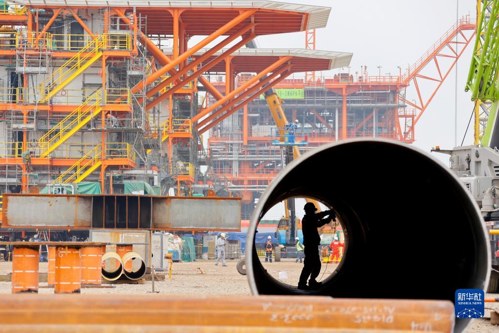 10月7日,工人在海油工程天津智能化制造基地平臺建造現場(chǎng)進(jìn)行打磨作業(yè)。