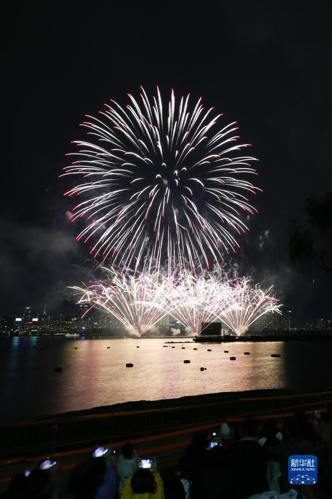10月7日,人們在韓國首爾國際煙花節上欣賞來(lái)自中國的煙花表演。