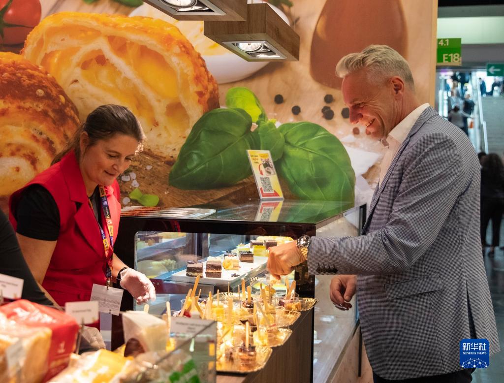10月7日,參觀(guān)者在德國科隆國際食品博覽會(huì )上品嘗甜品。新華社記者 張帆 攝