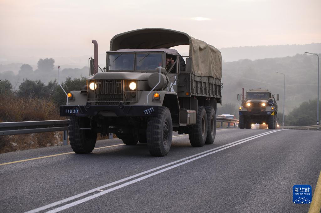 10月8日,以色列軍用車(chē)輛在北部靠近黎巴嫩邊境區域的道路上行駛。