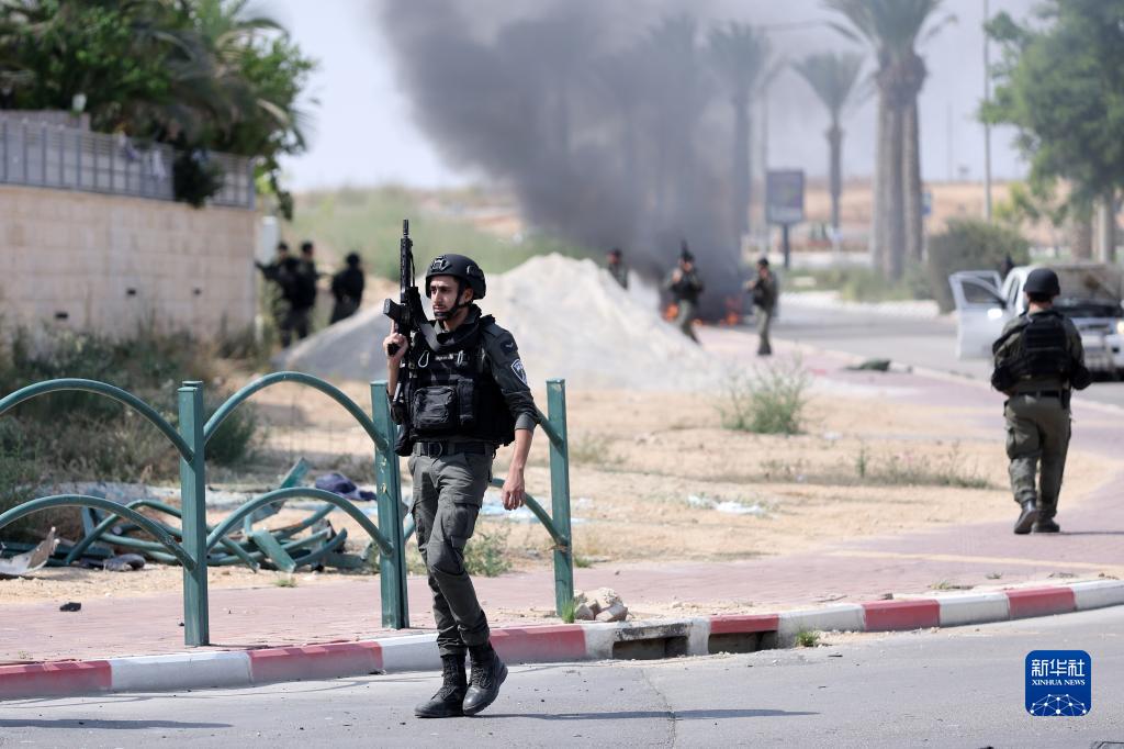 這是10月8日在以色列南部城鎮奧法基姆拍攝的以軍士兵。