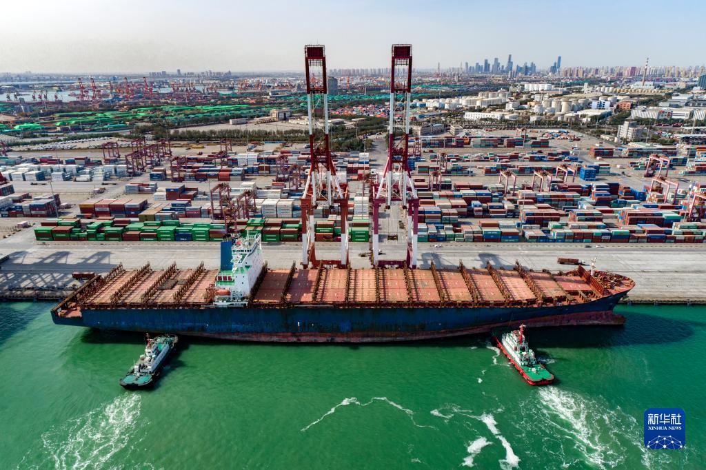 一艘貨輪??刻旖蚋郏?020年10月27日攝,無(wú)人機照片)。