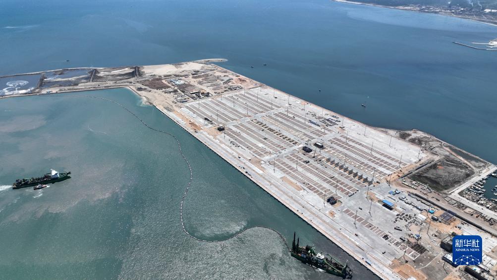 這是2023年7月1日在埃及亞歷山大省拍攝的阿布基爾港集裝箱碼頭項目建設現場(chǎng)(航拍照片)。