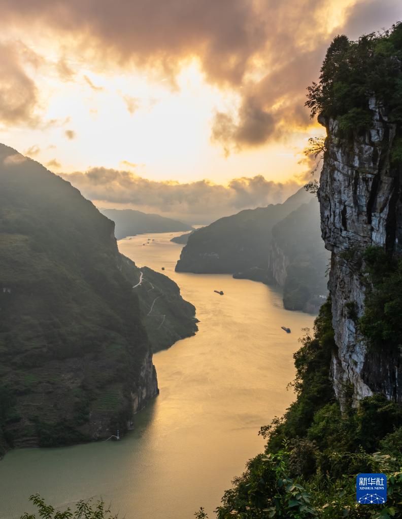 10月8日,船舶行駛在長(cháng)江三峽西陵峽湖北省宜昌市秭歸縣水域。