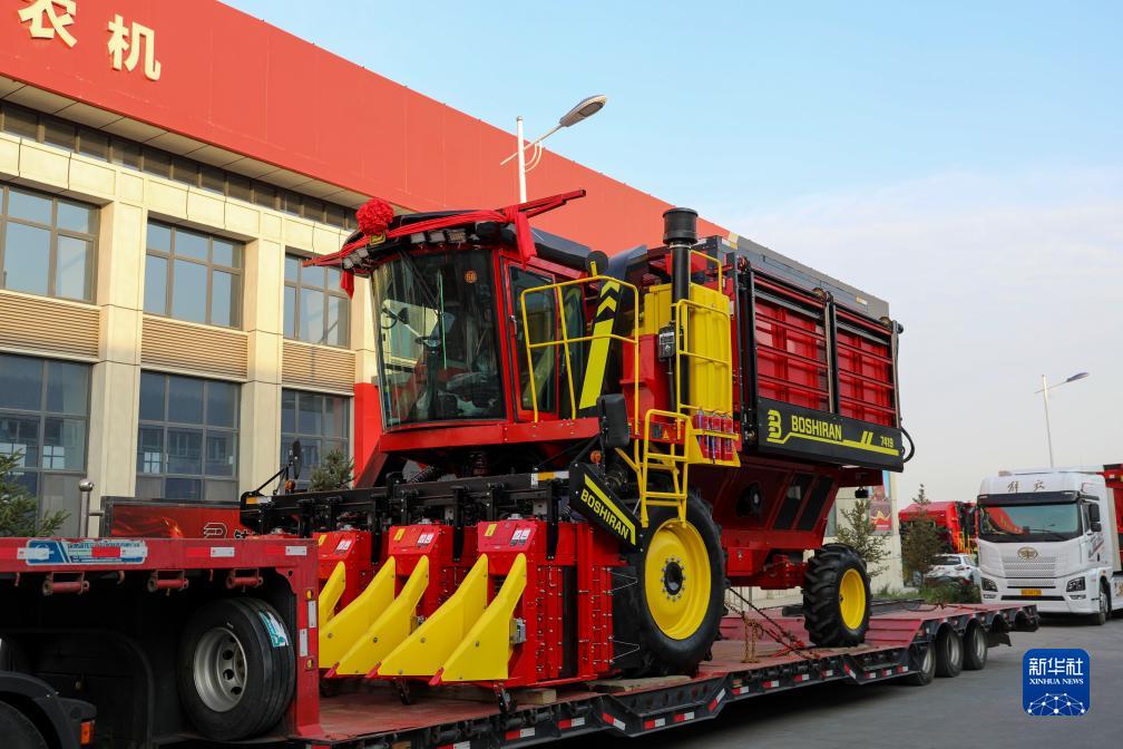 當日,位于新疆烏蘇市的新疆缽施然智能農機股份有限公司生產(chǎn)的首批18臺四行箱式采棉機被運往霍爾果斯口岸,出口烏茲別克斯坦。此次出口烏茲別克斯坦共有54臺采棉機,剩余部分計劃年底之前出貨完畢。