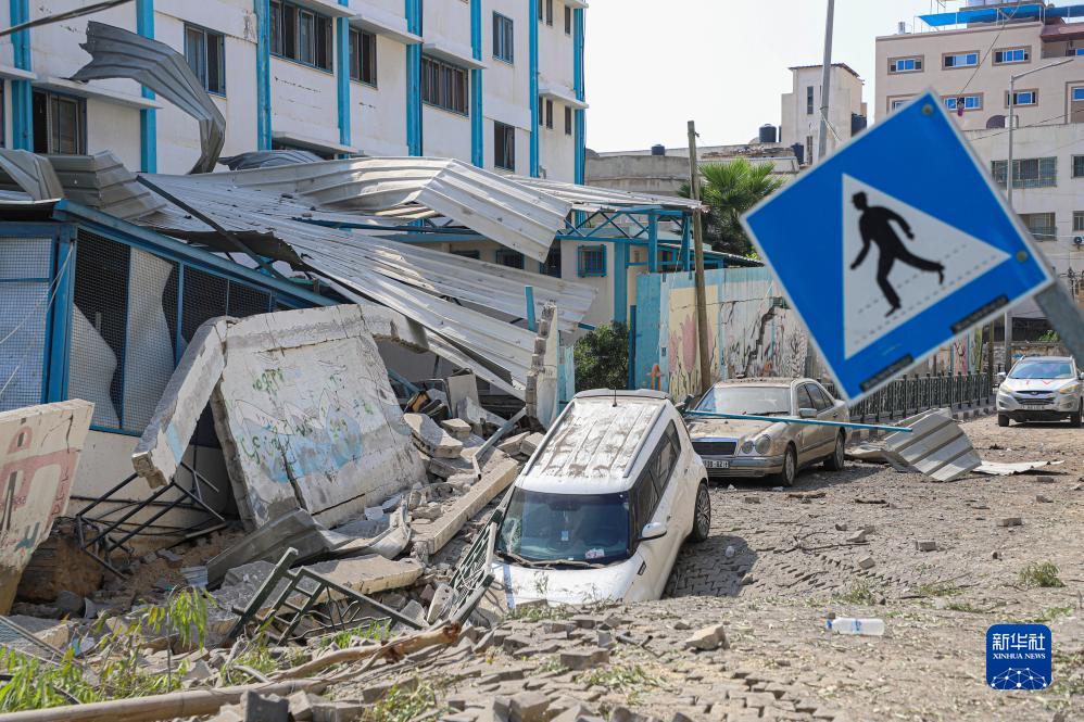這是10月8日在加沙城拍攝的被以色列空襲炸毀的一所學(xué)校的入口。