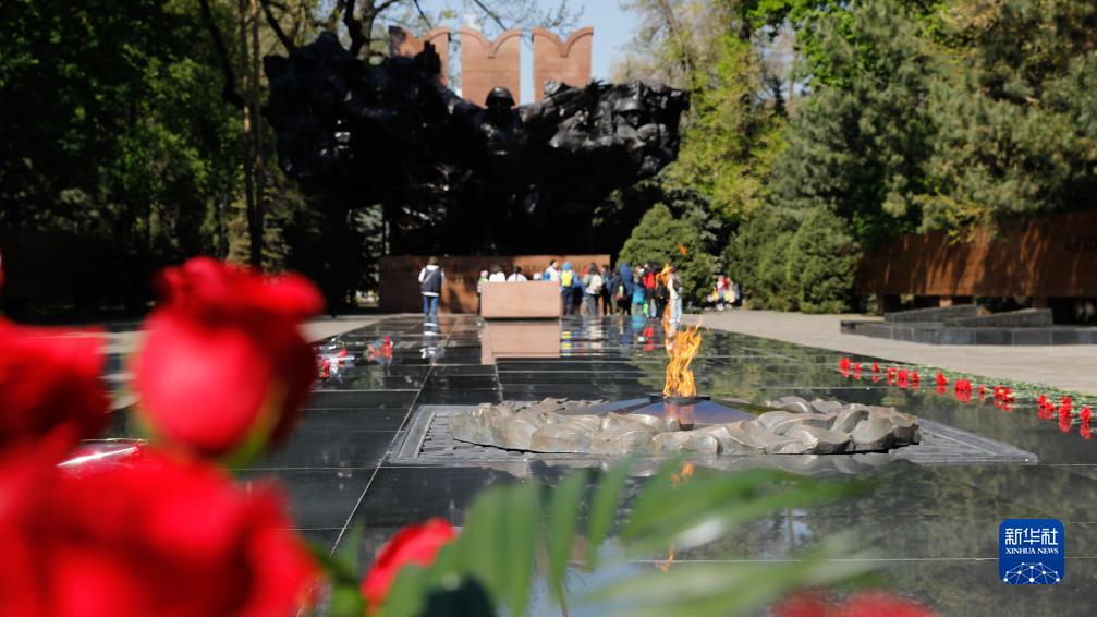 這是5月5日在哈薩克斯坦阿拉木圖市拍攝的潘菲洛夫二十八勇士公園。