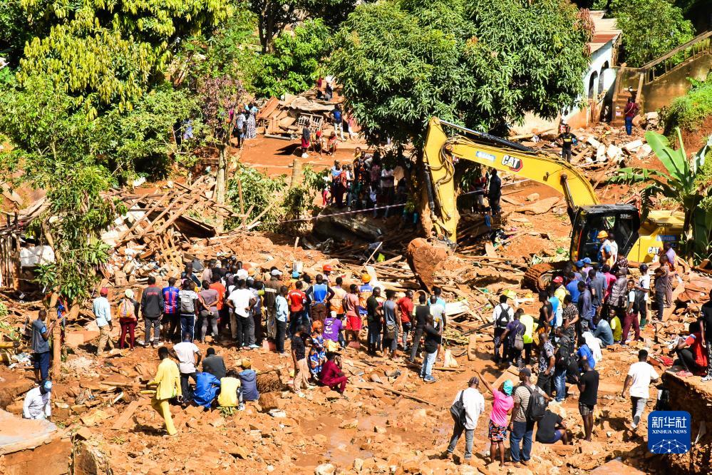 10月9日,人們在喀麥隆雅溫得山體滑坡災害現場(chǎng)開(kāi)展搜救工作。