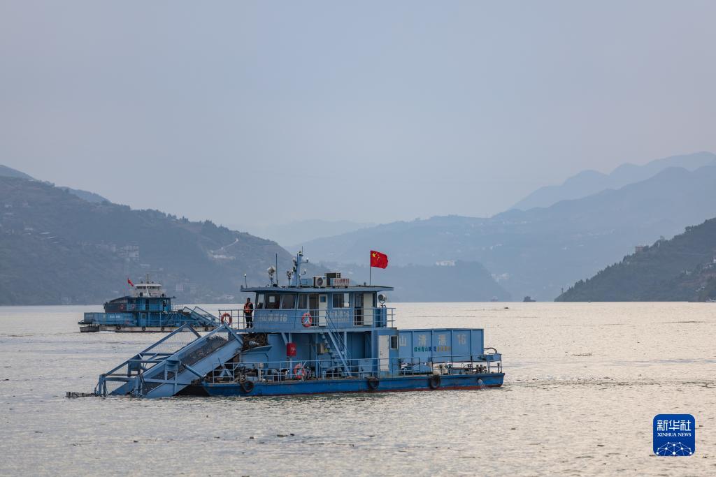 10月9日,重慶市巫山縣清漂隊工作人員在長(cháng)江巫峽口段進(jìn)行清漂作業(yè)。