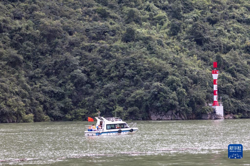 10月9日,重慶市巫山縣生態(tài)環(huán)境監測站的工作人員在長(cháng)江巫峽口段進(jìn)行水質(zhì)監測采樣。