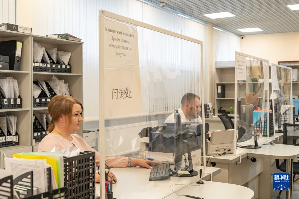 7月24日,工作人員在俄羅斯布拉戈維申斯克卡尼庫爾干海關(guān)物流口岸辦事區工作。