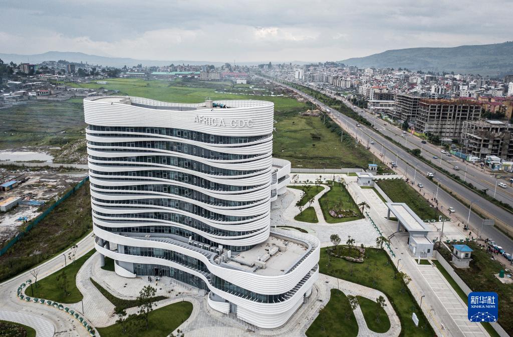 這是2023年9月10日在埃塞俄比亞首都亞的斯亞貝巴拍攝的非洲疾控中心總部大樓(無(wú)人機照片)。中國援非盟非洲疾病預防控制中心總部(一期)項目于2023年1月竣工,這是非洲大陸第一個(gè)擁有現代化辦公和實(shí)驗條件、設施完善的全非疾控中心。
