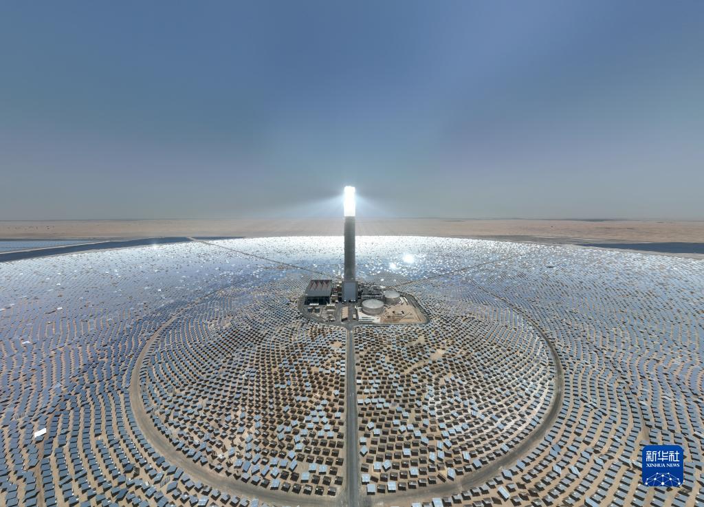這是2022年8月15日在阿聯(lián)酋迪拜拍攝的上海電氣迪拜光熱光伏復合項目(無(wú)人機照片)。位于阿聯(lián)酋迪拜的700MW光熱和250MW光伏復合項目由上海電氣集團股份有限公司總包,裝機規模大、技術(shù)標準高,助力阿聯(lián)酋實(shí)現清潔能源目標。