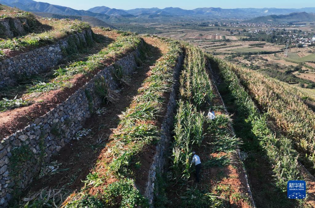 金秋時(shí)節,在河北省遵化市劉備寨鄉由丘陵坡地改造成的梯田中,農民搶抓農時(shí)收獲玉米等秋糧。近年來(lái),遵化市大力實(shí)施土地整治工程,將淺山丘陵坡地和荒草地改造成保水保肥的水平梯田,促進(jìn)農業(yè)增效、農民增收。