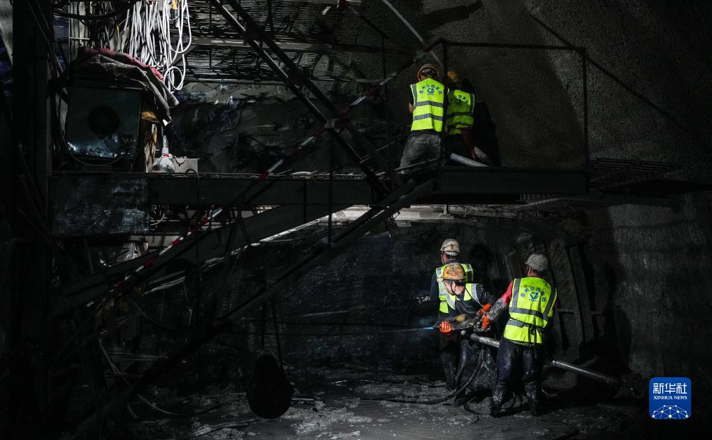 工人在納晴高速下壩隧道內進(jìn)行施工(10月9日攝)。