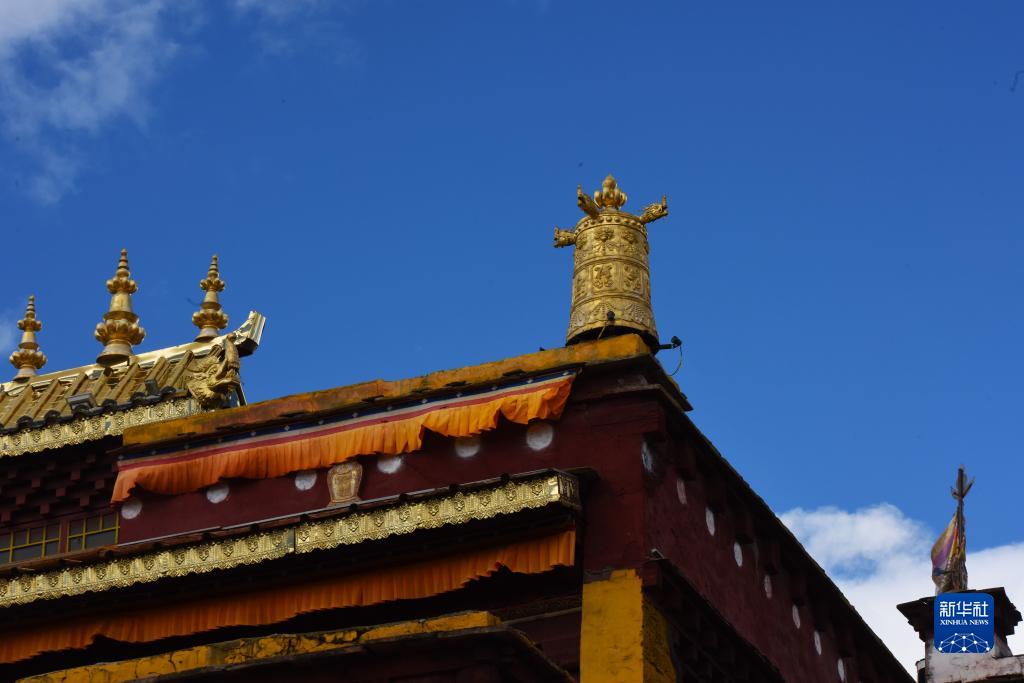 10月10日在四川甘孜藏族自治州理塘縣拍攝的藏式建筑一角。