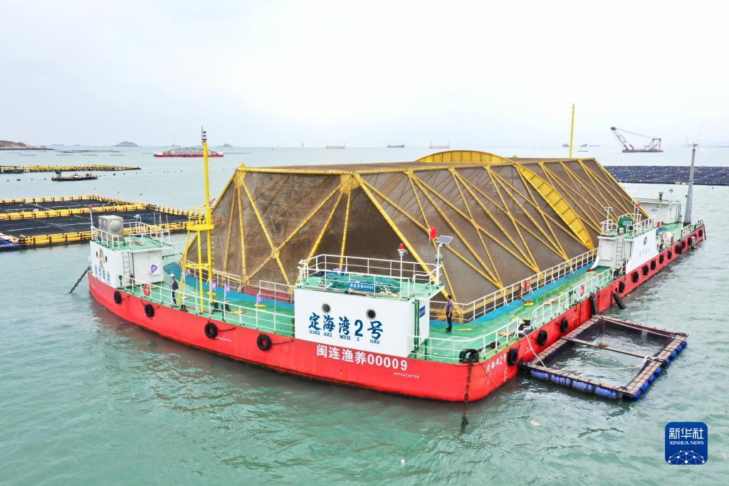這是10月10日拍攝的福建省連江縣定海灣內的“定海灣2號”深遠海養殖平臺(無(wú)人機照片)。