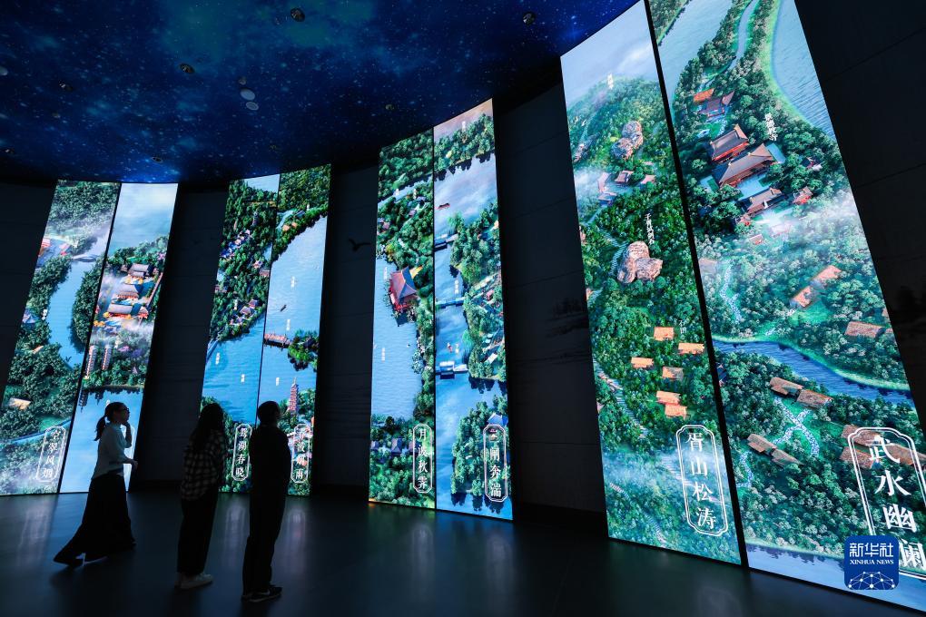 10月11日,游客在大運河數字詩(shī)路e站的嘉禾八景展廳內參觀(guān)。