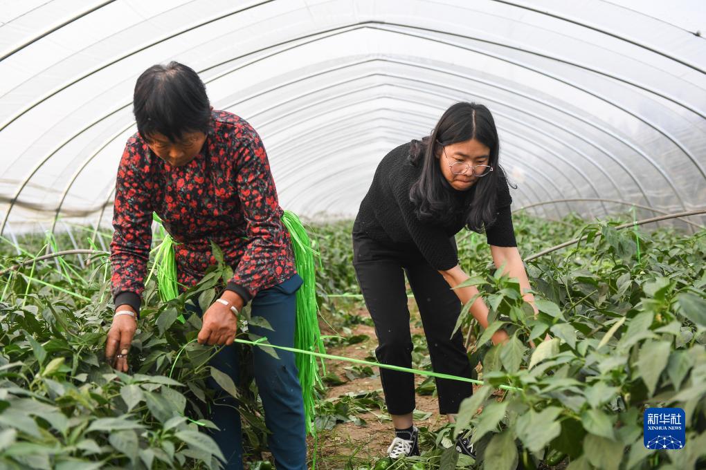 10月11日,在漣水縣五港鎮蔡工村,江蘇省人大代表、村黨總支書(shū)記、村委會(huì )主任王瑋(右)在大棚內協(xié)助村民管護辣椒。今年以來(lái),王瑋牽頭成立合作社,規模種植高粱、辣椒、紅薯,壯大村集體經(jīng)濟。