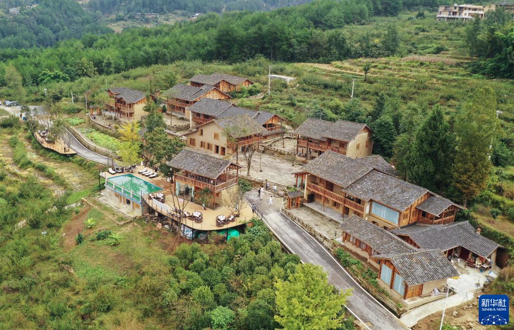 10月10日拍攝的位于重慶市石柱土家族自治縣橋頭鎮的民宿院落群(無(wú)人機照片)。