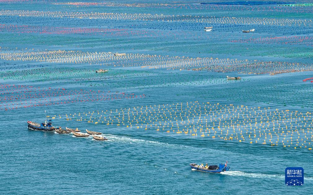 金秋時(shí)節,在山東省榮成市,各大海洋牧場(chǎng)海上養殖區一派繁忙景象,漁民駕駛漁船、舢板出海作業(yè),在碧海上“繪”出一幅幅秋日漁耕圖。