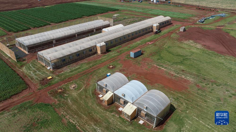 這是10月11日在位于巴西圣保羅州克拉維紐斯拍攝的隆平巴西育種溫室大棚(無(wú)人機照片)。