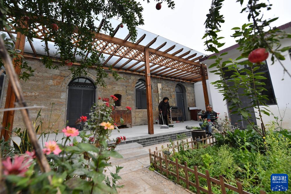 10月12日,村民在石家莊市鹿泉區岸下村一處民宿小院收拾家務(wù)。