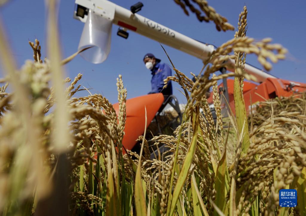金秋時(shí)節,河北省唐山市的水稻迎來(lái)收獲季節,農民開(kāi)始搶抓農時(shí)適時(shí)收獲,確保顆粒歸倉。