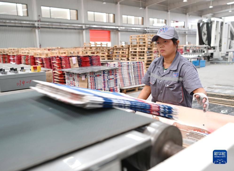 10月12日,河北元氏縣一家新材料生產(chǎn)企業(yè)工人在車(chē)間生產(chǎn)線(xiàn)上工作。