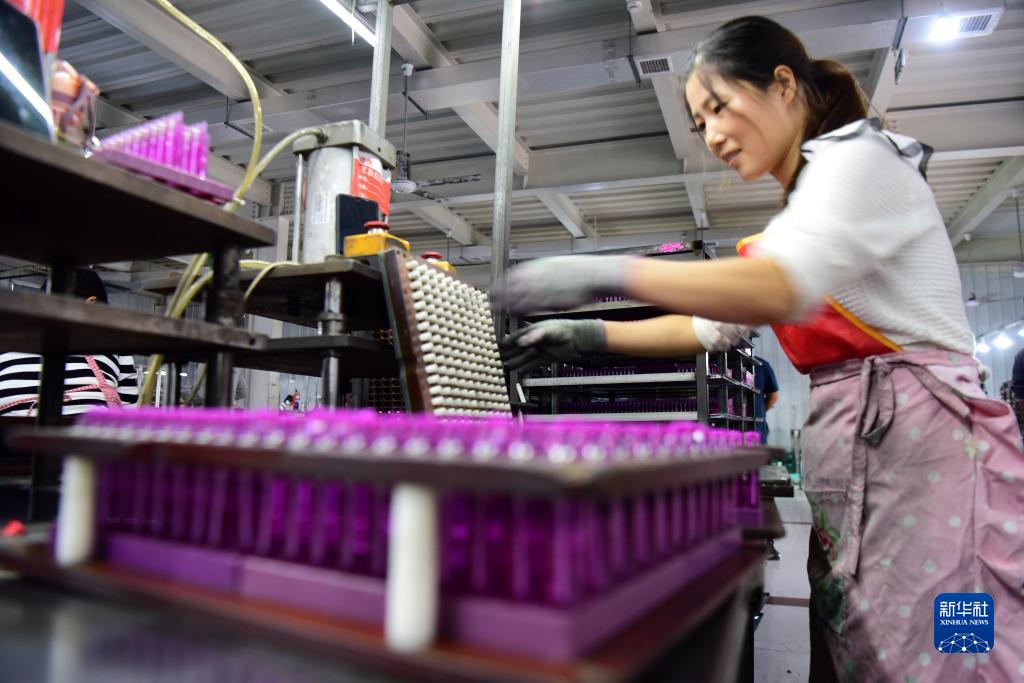 10月12日,工人在河南省夏邑縣會(huì )亭鎮一家打火機企業(yè)的生產(chǎn)車(chē)間工作。
