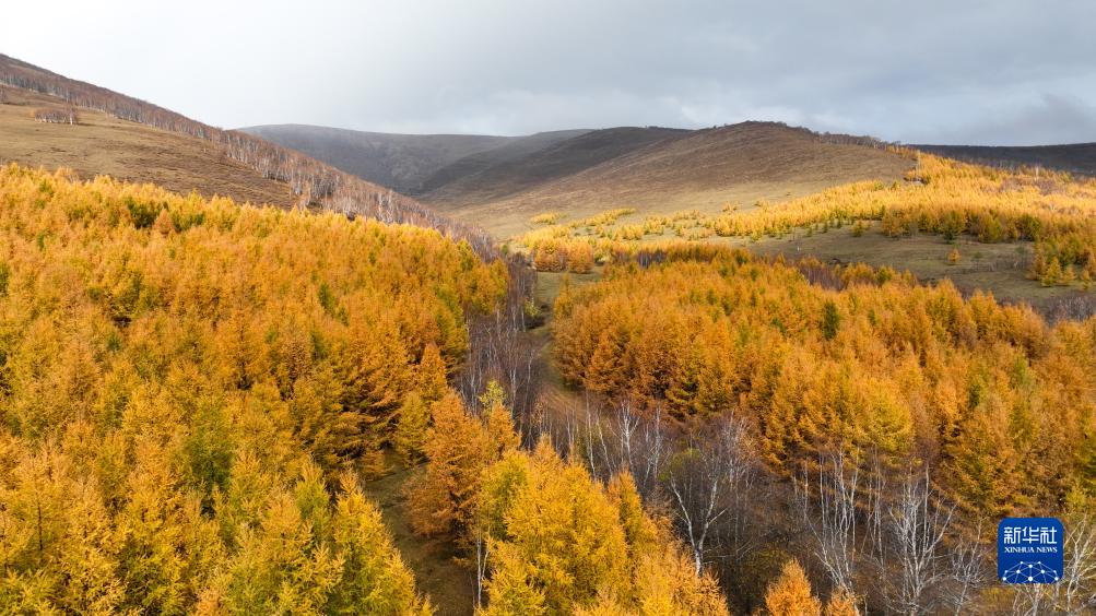 內蒙古自治區赤峰市克什克騰旗秋日風(fēng)光(10月13日攝,無(wú)人機照片)。