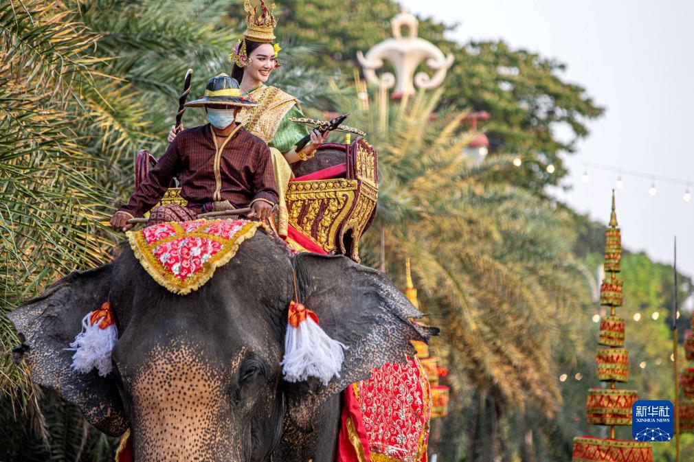2022年4月13日,在泰國大城府,演員參加街頭巡游活動(dòng)慶祝泰國傳統新年宋干節。