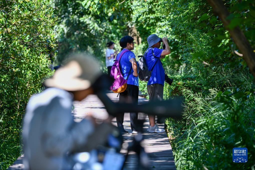 10月13日,市民在深圳福田紅樹(shù)林濕地觀(guān)察候鳥(niǎo)。