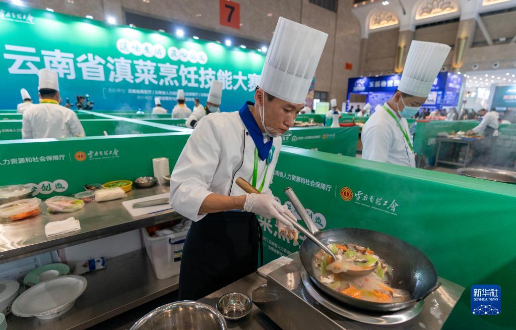 10月13日,參賽選手在云南國際餐飲美食暨預制菜產(chǎn)業(yè)博覽會(huì )上參加云南省滇菜烹飪技能大賽。