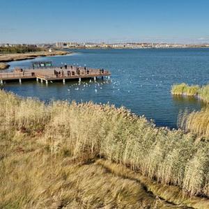 金秋時(shí)節,位于河北省康??h的康巴諾爾國家濕地公園天藍水清、飛鳥(niǎo)翔集,構成一幅人與自然和諧共生的美麗畫(huà)卷。近年來(lái),康??h持續加強康巴諾爾國家濕地公園建設與管理,實(shí)施了濕地恢復與保護、生態(tài)景觀(guān)建設、基礎設施建設等一系列工程,濕地面積由2745畝恢復到5500畝,綠化綠地增加了1800畝,已有遺鷗、黑鸛、東方白鸛、紅嘴鷗等數萬(wàn)只鳥(niǎo)類(lèi)在康巴諾爾國家濕地公園棲息。
