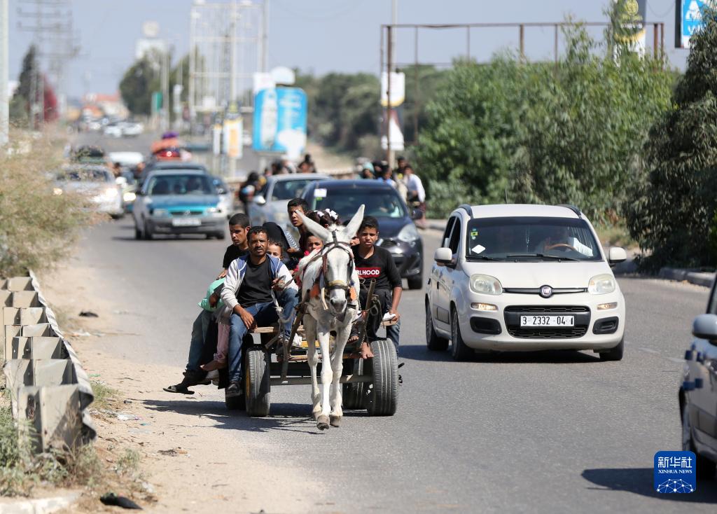10月13日,在加沙地帶南部地區,人們逃離家園。