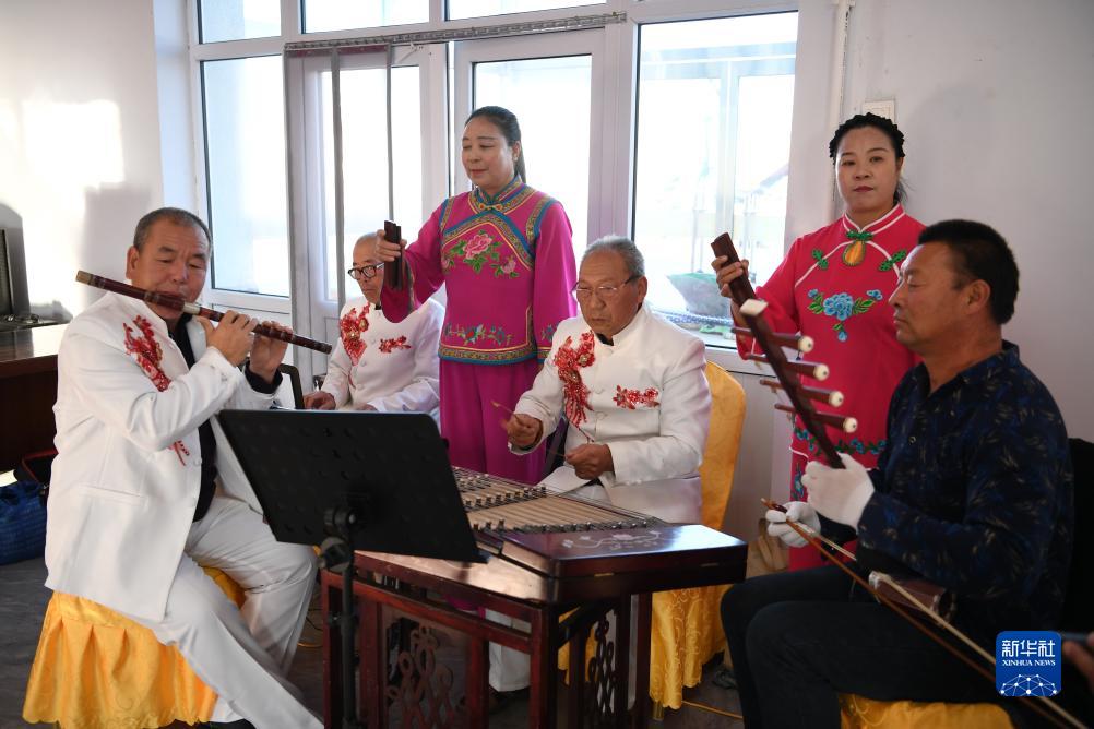 10月13日,一支康保二人臺劇團在河北省康??h大蘿卜村內排練曲目。