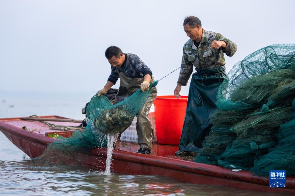 近日,洞庭湖養殖的螃蟹迎來(lái)了豐收季,湖南省益陽(yáng)市大通湖管理區的蟹農正抓緊捕撈,供應各地市場(chǎng)。大通湖是洞庭湖的重要組成部分,水產(chǎn)資源豐富。