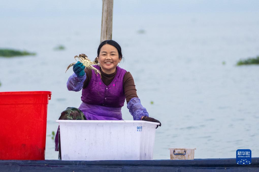 近日,洞庭湖養殖的螃蟹迎來(lái)了豐收季,湖南省益陽(yáng)市大通湖管理區的蟹農正抓緊捕撈,供應各地市場(chǎng)。大通湖是洞庭湖的重要組成部分,水產(chǎn)資源豐富。