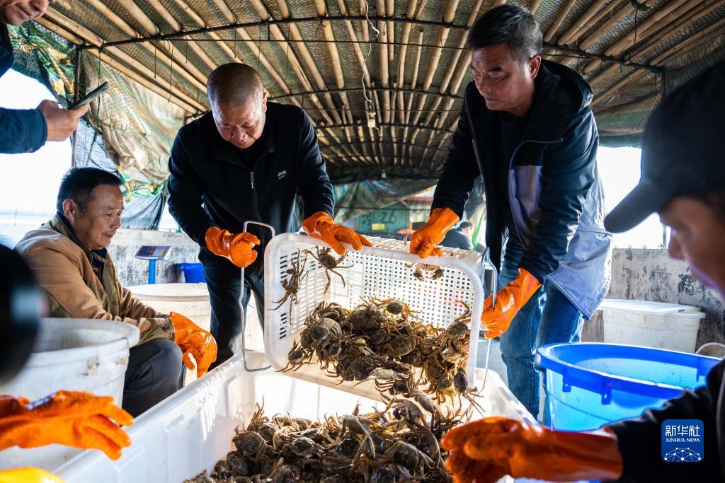 近日,洞庭湖養殖的螃蟹迎來(lái)了豐收季,湖南省益陽(yáng)市大通湖管理區的蟹農正抓緊捕撈,供應各地市場(chǎng)。大通湖是洞庭湖的重要組成部分,水產(chǎn)資源豐富。