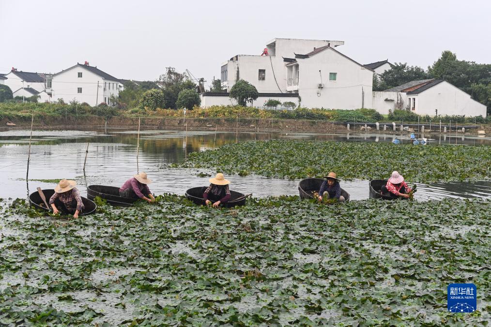 近日,浙江省湖州市南潯區和孚鎮多個(gè)鄉村種植的菱角進(jìn)入收獲季。村民劃著(zhù)菱桶在水面采菱,展現一幅江南水鄉獨有的豐收圖景。